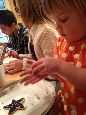 Saturday kicked off our Christmas Festivities. We went to the Annual Christmas Cookie Decorating Contest hosted by Ralph & Lane Gonzalez. We started keeping track of the winners in 2007 and have a plaque with the winners' names on it. Brent tried saying I don't like decorating, but I had to remind him that my name is on that plague.....not his! :o) Anyway, Zuri wanted to help mommy decorate a cookie. Here's a picture of her hard at work.